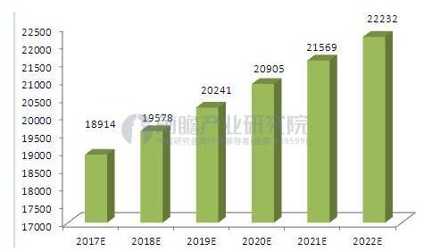 圖表1:2017-2022年中國(guó)海綿城市建設(shè)市場(chǎng)規(guī)模走勢(shì)預(yù)測(cè)(單位:億元)